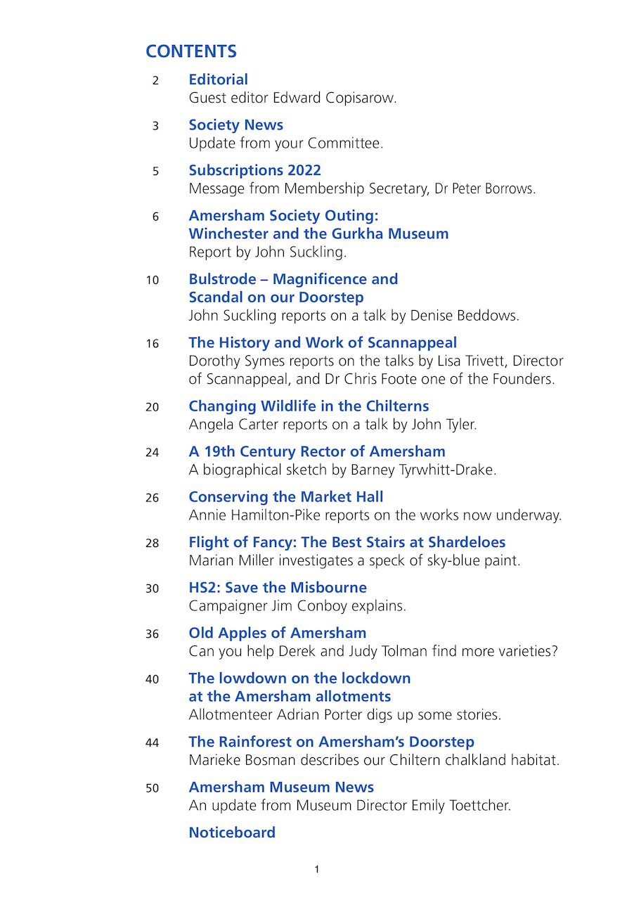 Amersham Society January 2022 Newsletter and 2022 Programme are now published and soon will be delivered to the Society members.